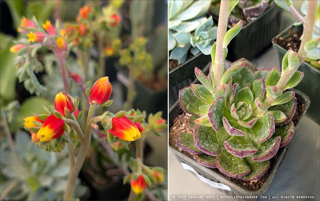 Next to cacti, soft-leaved succulents – anything without teeth, spines, or prickles – were probably the best represented plant group. Clearly, there is a lot of demand for succulents that can’t hurt you. The fact that they’re often very colorful, easy to grow, and generally suited for cultivation in containers adds to their attraction. I actually ended up buying a few echeverias myself.